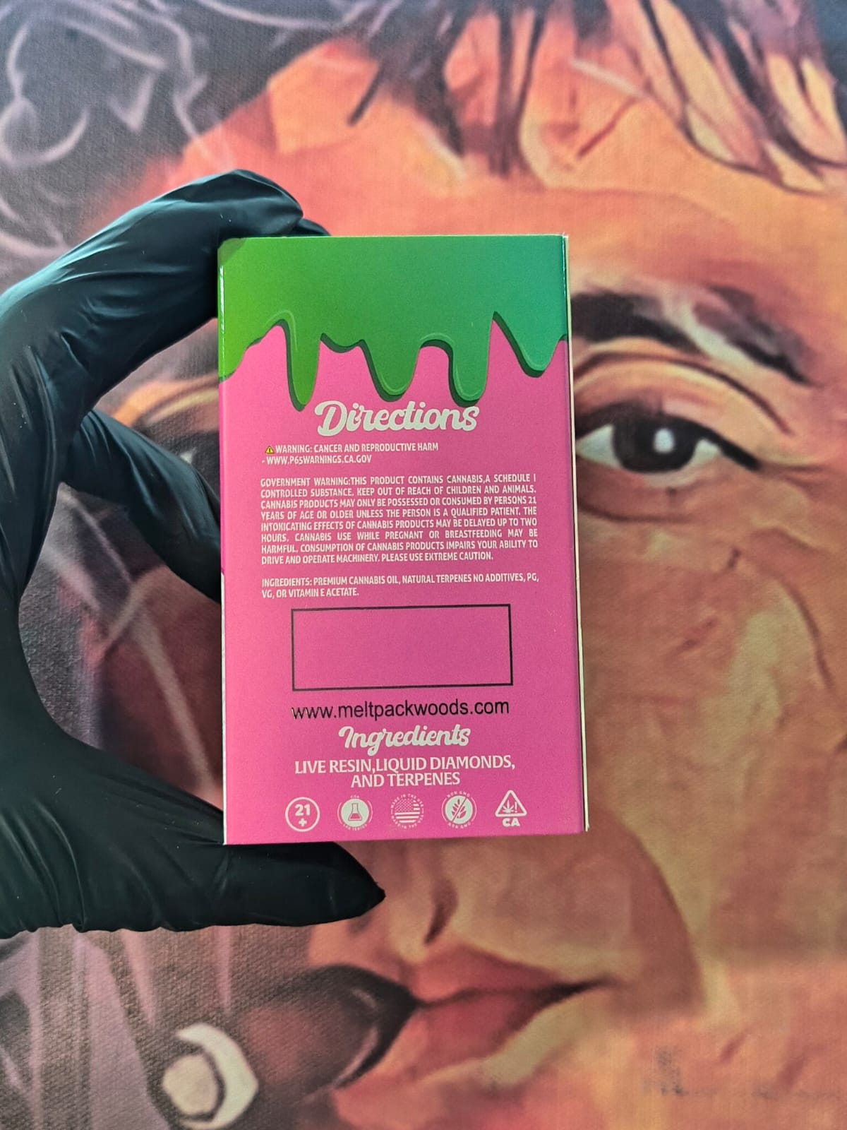 Melt X Packwoods-Berry Zkittlez(Hybrid) delivers a perfect fusion of flavor, potency, and balanced effects. Its fruity aroma, smooth smoke, and high THC content make it ideal for users who want a premium hybrid cannabis experience. Whether you are seeking relaxation, mood elevation, or stress relief, Berry Zkittlez offers versatility, luxury, and consistency, reflecting the expertise of Melt Extracts and Packwoods in every puff